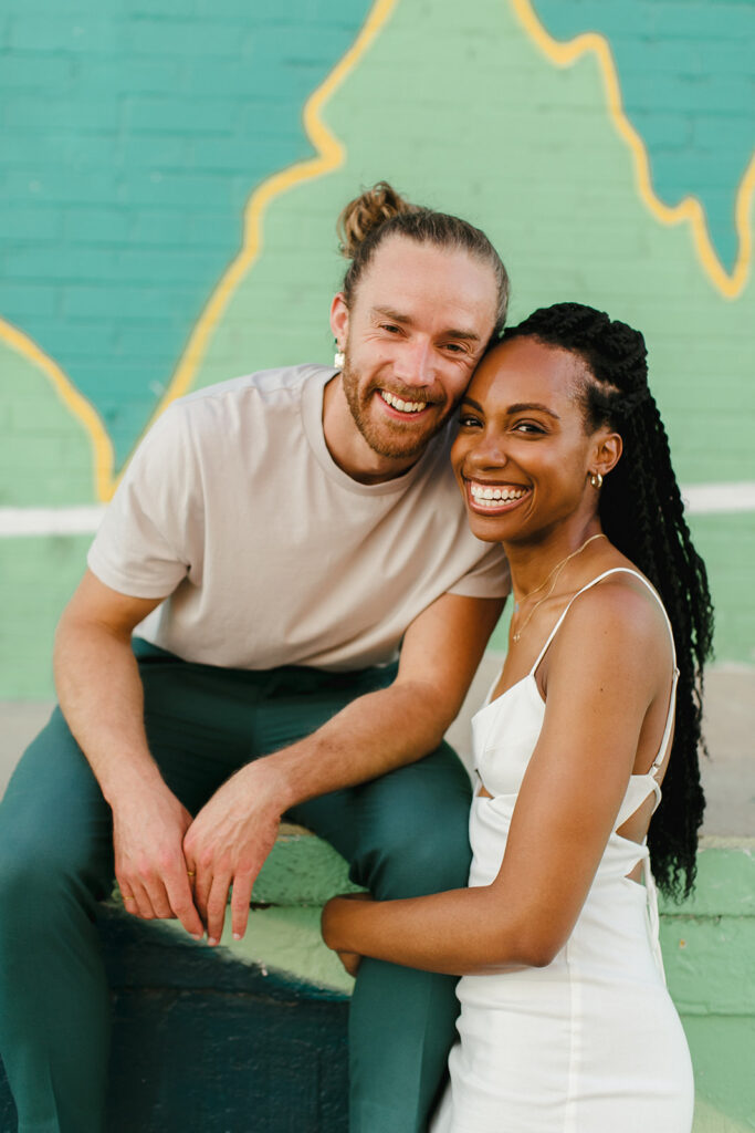 The River North Art District is a vibrant urban location full of murals, industrial buildings, and creative energy. Perfect for modern, edgy couples who want a colorful, dynamic setting. The same couple from above chose to add RiNo for the second half of their session with me, and later, their session got featured in Rocky Mountain Bride.