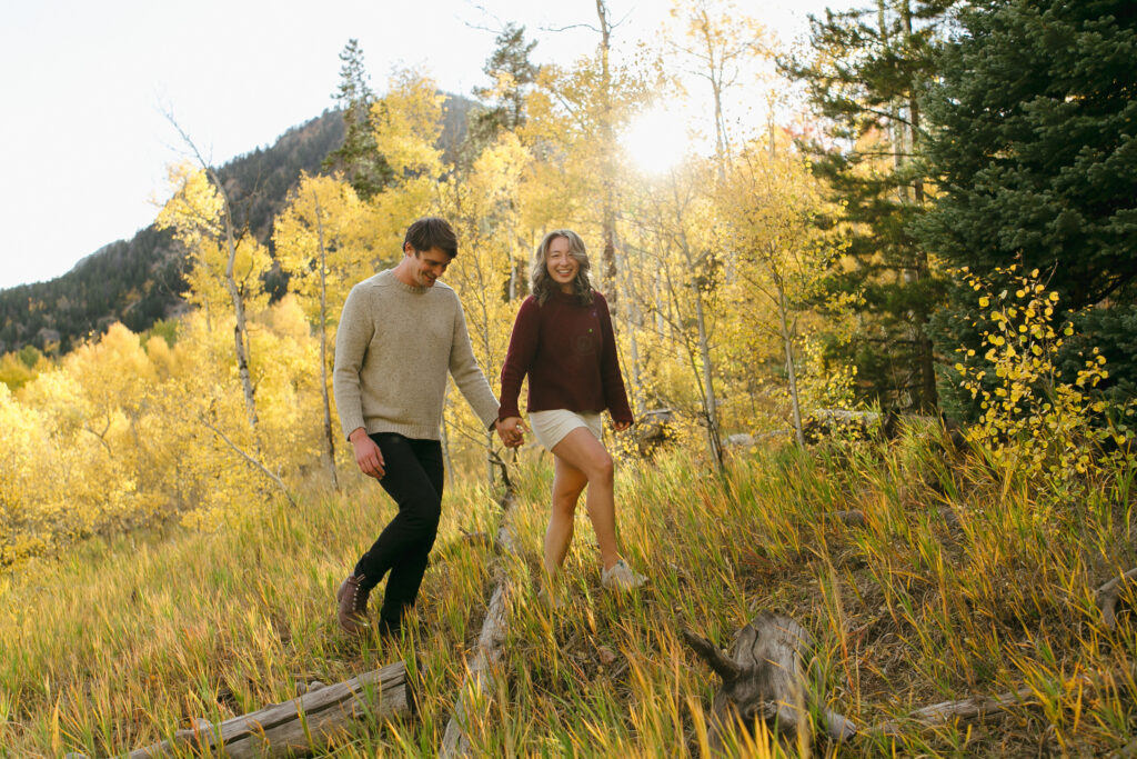 If you’re looking for a place that feels like a true mountain escape, this is it. Officer’s Gulch in Frisco and its surrounding areas in Summit County offer a perfect blend of alpine beauty, mountain lakes, and forest trails. There are a handful of locations that feature tranquil water, sweeping mountain views, and open meadows. Locations like this provide an incredible mix of backdrops all within close proximity — making them ideal for couples who want variety in their gallery. These quieter areas tend to be less crowded, allowing for a more intimate, relaxed experience. This is one of my most popular requests for engagement sessions because it allows my couples to highlight their love of hiking and the outdoors, while still being relatively easy to access.